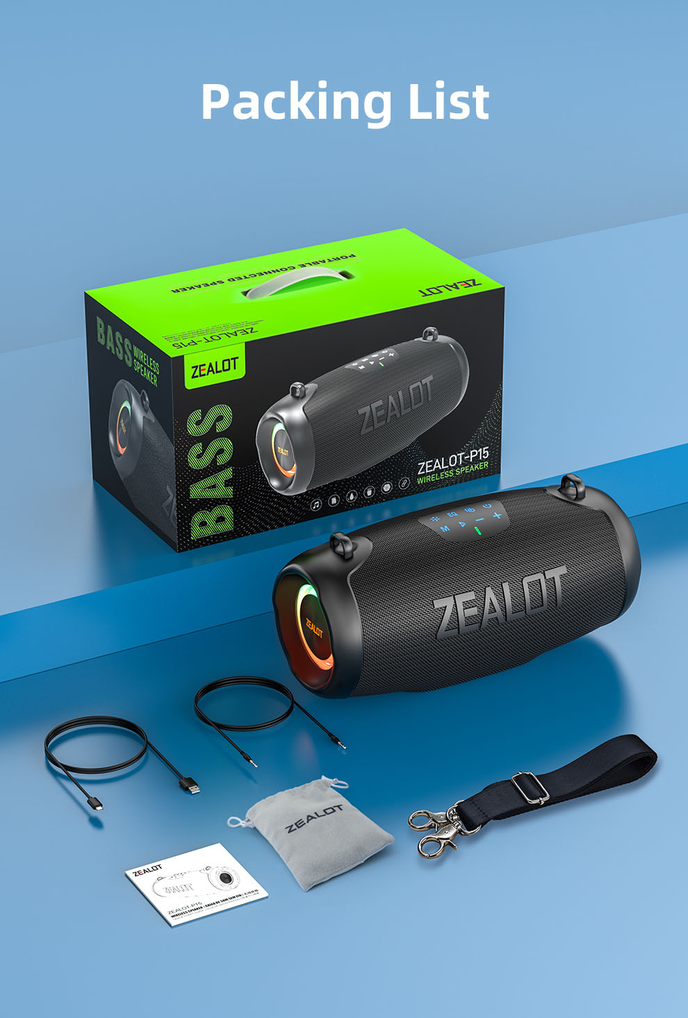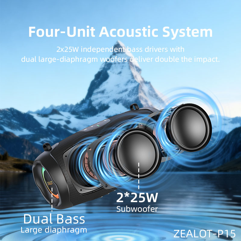 The ZEALOT ZE01 portable Bluetooth speaker supports TWS true wireless stereo and a subwoofer.